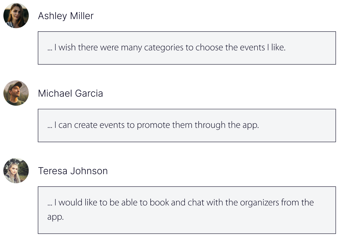 This survey and the feedback from the respondents was very helpful to understand mainly what are the problems and frustrations our future users face, their goals and desires and how our app can help them to fulfill them. An digital product is never 100% designed or developed, but these first findings inspire us to have a solid base with which to start designing our product.