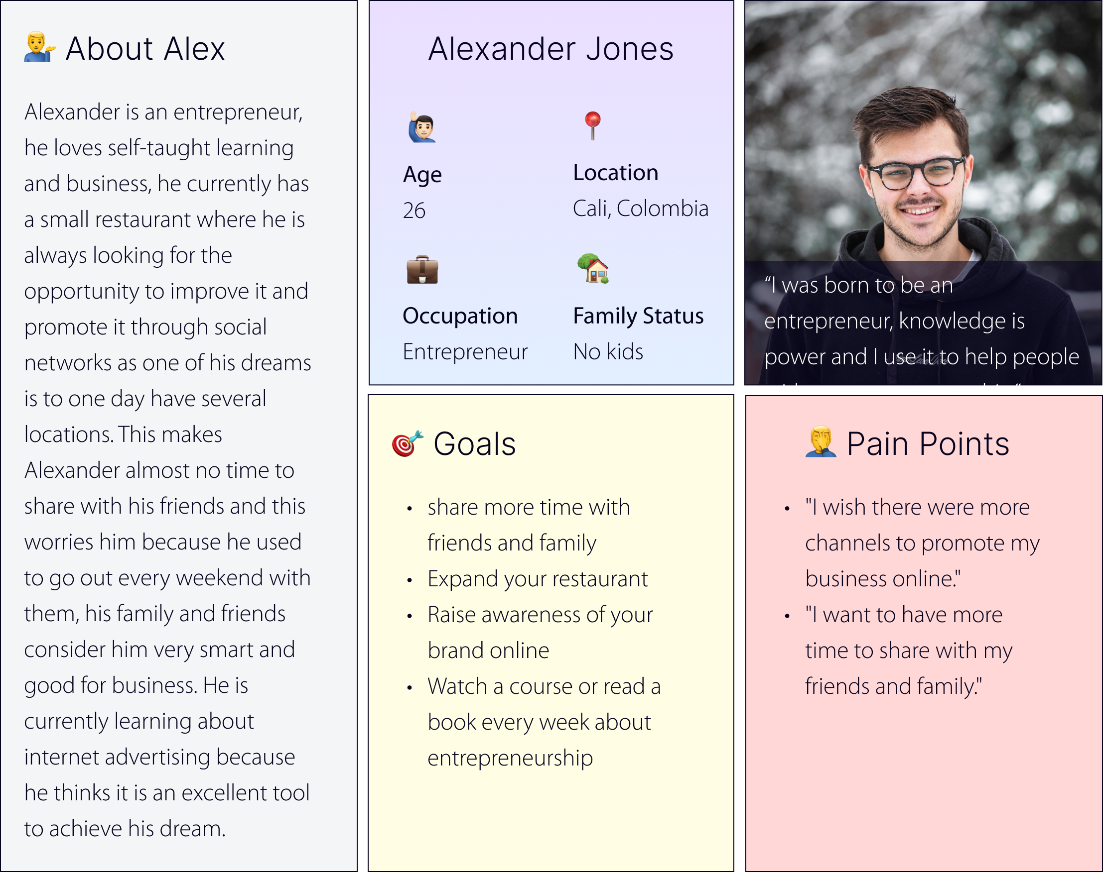 Through this tool I managed to learn more about our next users, delving especially into the most human part, I feel that if we want to give a more complete response with our product, this is one of the most necessary tools in any design process, especially when start of the project.
