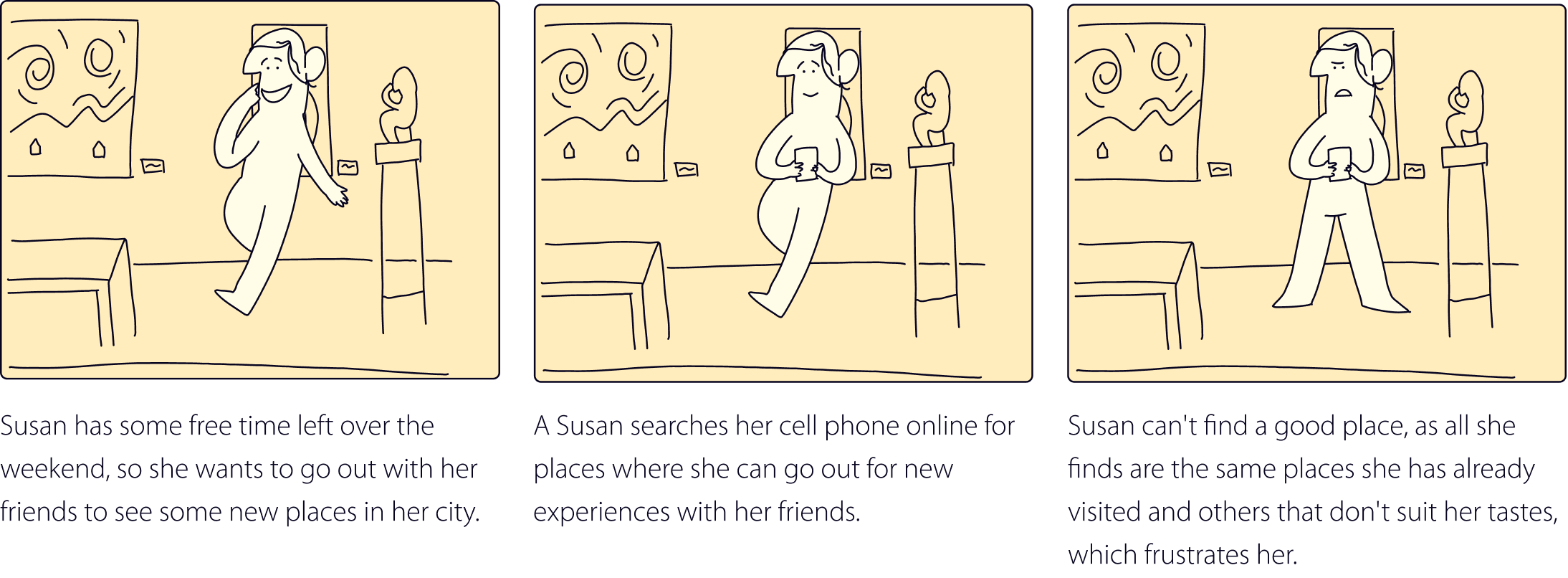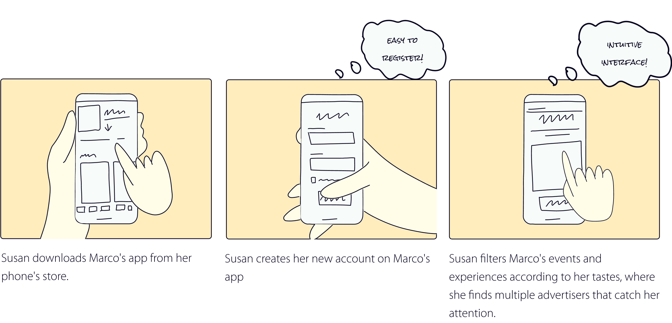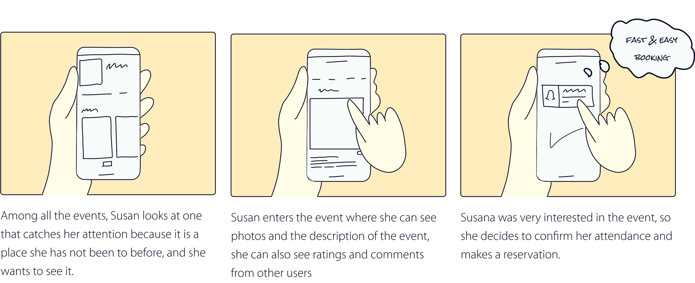 I needed a broader picture, a great answer I found to understand and explore what our users' experience in the app would be like was Storyboarding. The result was divided into 2 panoramas: large image and close-up, the result was as follows: