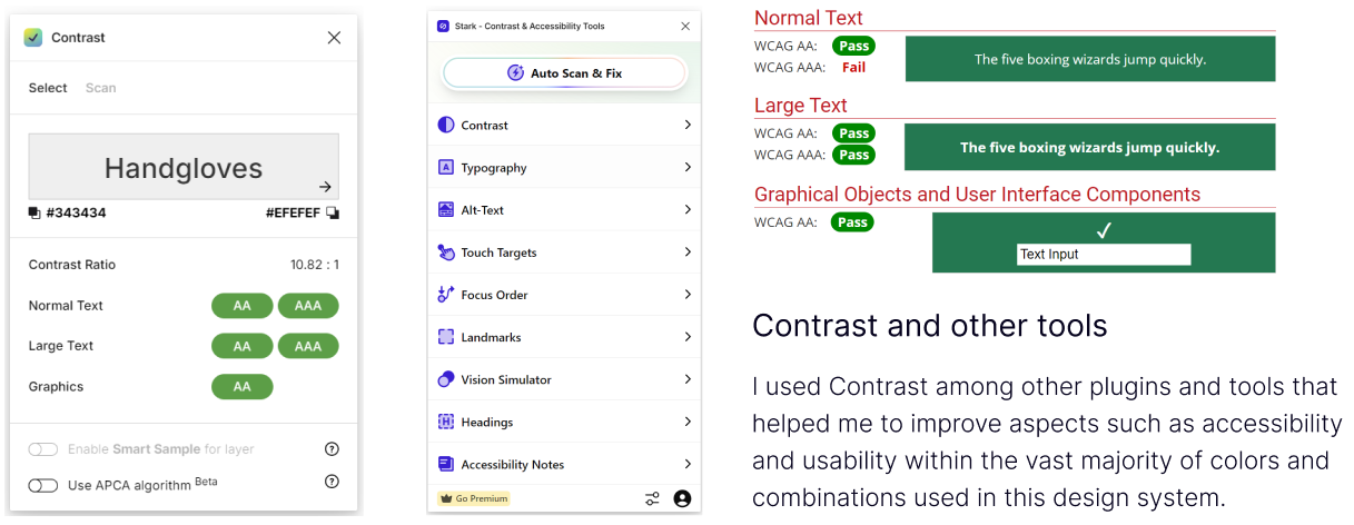 • Concepts which I had previously studied and put into practice in personal projects, such as components, design patterns, style guides, tokens, component libraries, documentation and iteration, variants and prototyping, among many other aspects were tested in depth and in full understanding.