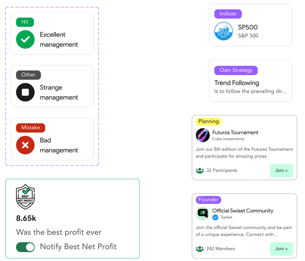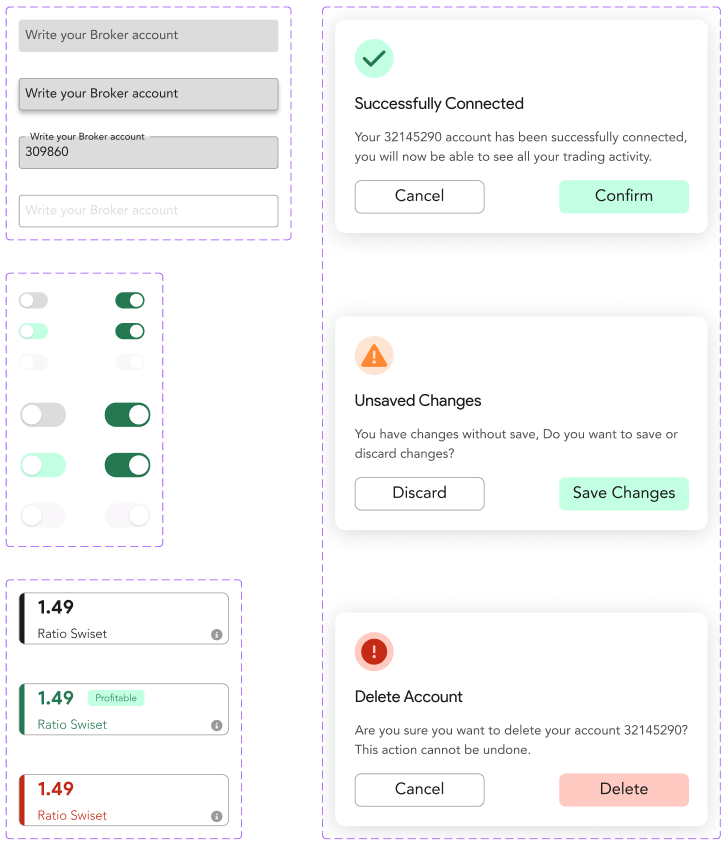 Finally, some of the other components that make up the Swiset design system, with their respective status and features, where each one was thought and has a sense objective: to improve the experience that users have when using them.